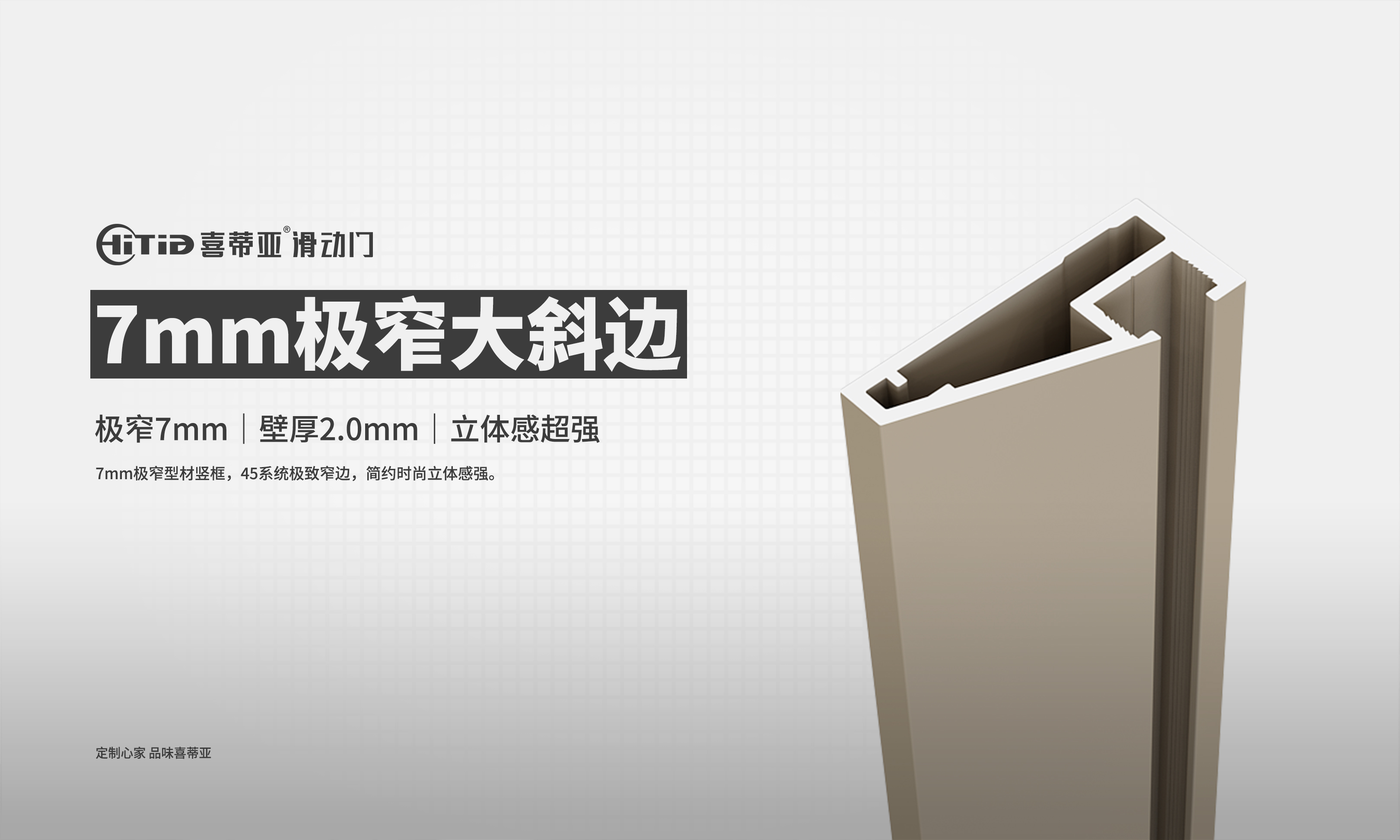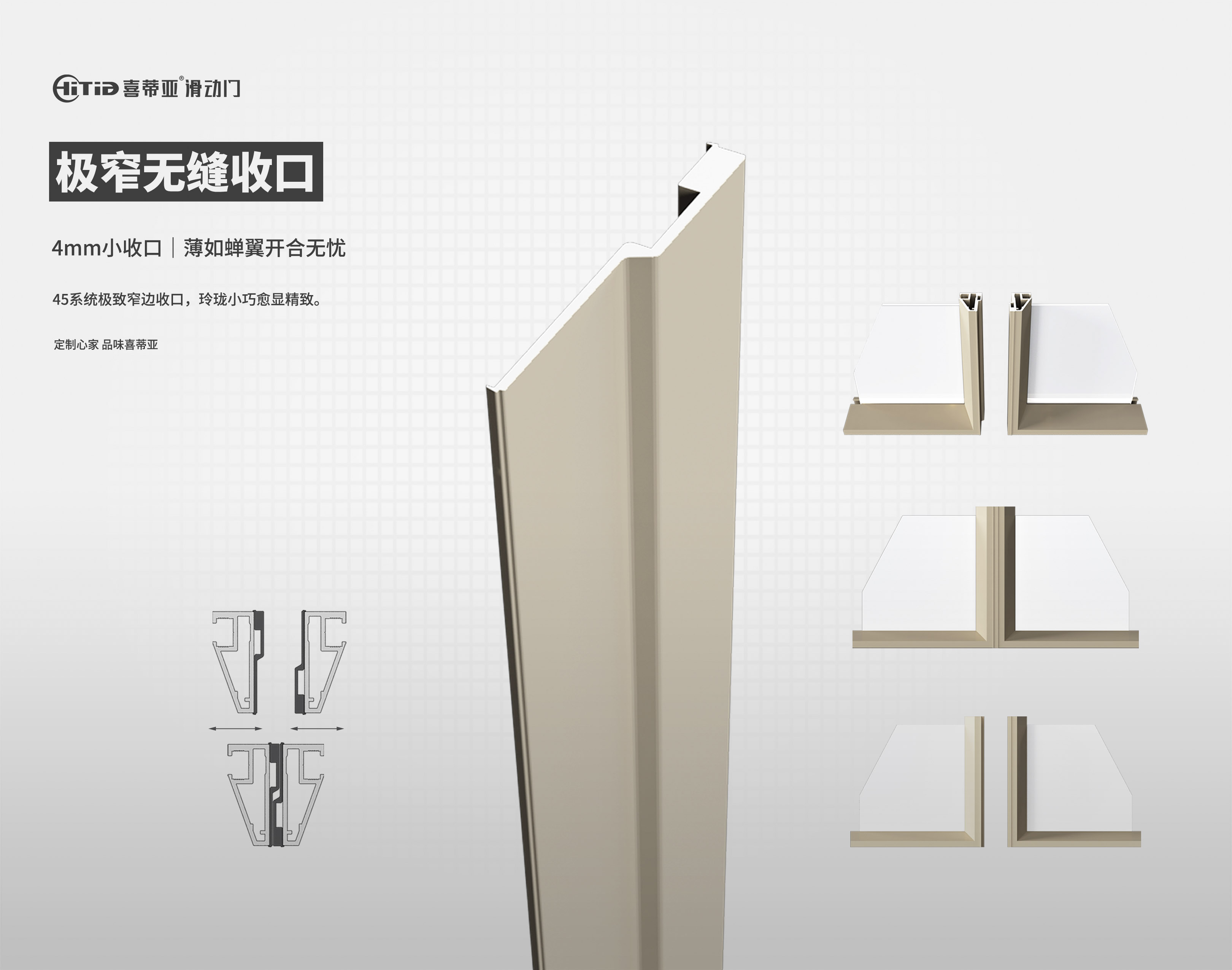 极窄极简风格的盛行,让市场涌现许多不同极窄门款。但喜蒂亚极窄7mm大斜边,一定是45系统看面最窄的产品。其超强的立体感、精致感给人不